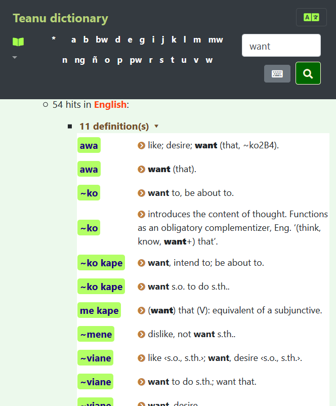 Welcome to the 2021 online version of my Teanu – English dictionary!