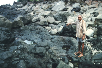 Voici une preuve que le mythe d'Ikpwet est bien un mythe et non un simple conte : Stakis nous montre le lit, aujourd'hui pétrifié, dans lequel dormait le héros mythologique aux tout premiers temps du monde.