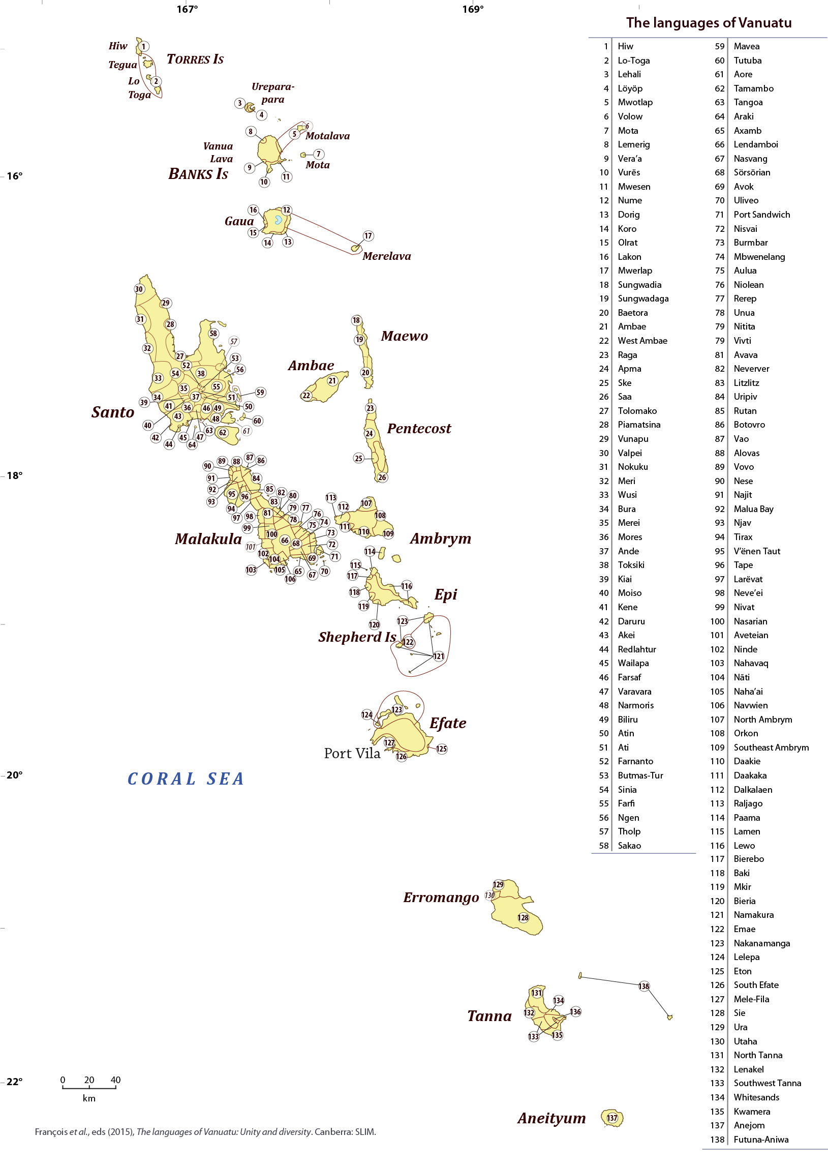 | → Source: François, A.; M. Franjieh; S. Lacrampe & S. Schnell. 2015. In The Languages of Vanuatu: Unity and Diversity, ed. by A. François, S. Lacrampe, M. Franjieh & S. Schnell. Studies in the Languages of Island Melanesia, 5. Canberra: Asia Pacific Linguistics Open Access. Pp. 1–21. |